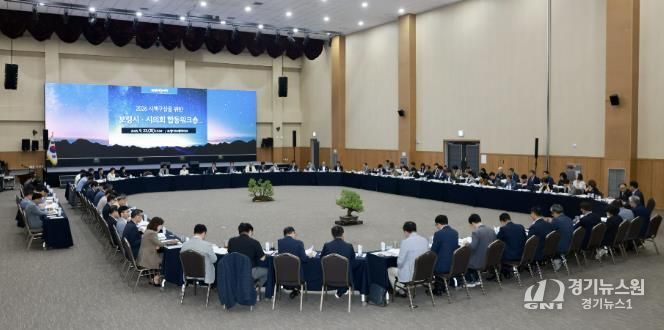 [경기뉴스원/경기뉴스1] | 보령시는 지난 23일 보령머드테마파크에서 김동일 보령시장과 최은순 보령시의회 의장, 본청 및 직속기관 실·과장, 읍·면·동장 등 100여 명이 참석한 가운데 ‘2026년도 시책 발굴을 위한 합동 워크숍’을 개최했다.