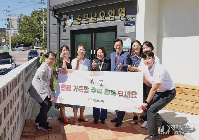 [경기뉴스원/경기뉴스1] | 전라남도의회 강문성 기획행정위원장(더불어민주당, 여수3)은 지난 9월 23일 추석 명절을 앞두고 여수시에 소재한 좋은날요양원과 여수농아원 시설을 방문해 위문품을 전달하고 시설관계자에게 감사와 격려의 마음을 전했다.