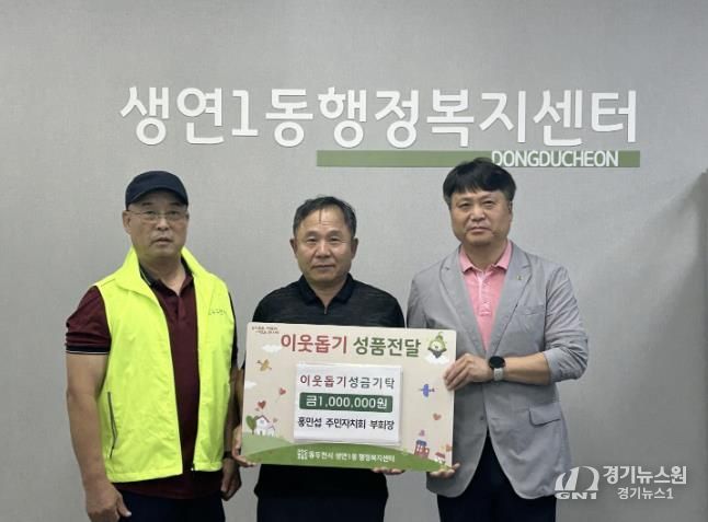 [경기뉴스원/경기뉴스1] | 동두천시 생연1동 행정복지센터는 생연1동 주민자치회 홍민섭 부회장이 복지 사각지대 이웃을 위해 성금 100만 원을 기탁했다고 밝혔다.