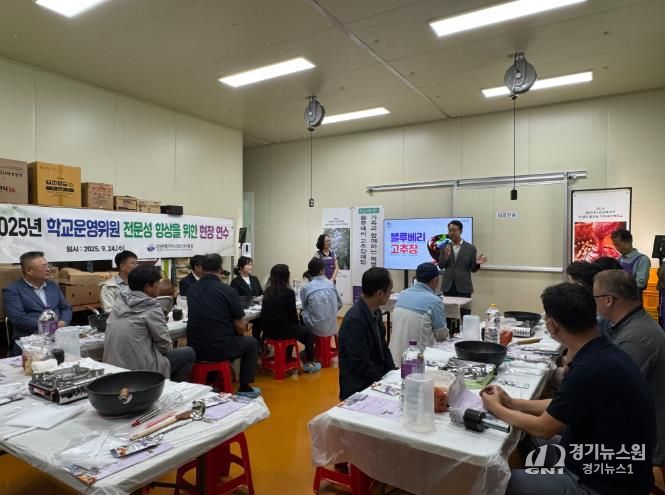 이번 연수는 전통 발효식품 제조 과정인 ‘블루베리 고추장 만들기 체험’을 통해 지역과 함께 성장하는 교육공동체를 실현하고, 학교운영위원의 역량과 리더십, 소통 능력을 배양하는 취지로 마련됐다.