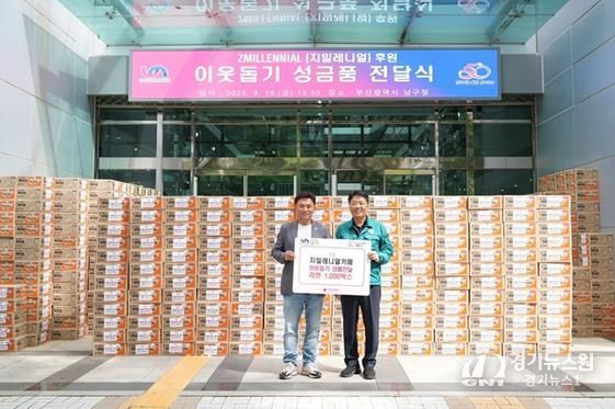 [경기뉴스원/경기뉴스1] | 지난 19일 지역 대표 카페인 지밀레니얼은 추석을 맞아 부산 남구(구청장 오은택)에 관내 저소득층을 위한 라면 1,000박스를 전달했다.