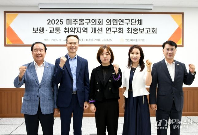 [경기뉴스원/경기뉴스1] | 인천광역시 미추홀구의회 의원연구단체 '보행·교통 취약지역 개선 연구회'(대표의원 박수연, 연구의원 장규철·배상록·김태계)가 2025년 9월 24일 미추홀구의회 세미나실에서 연구용역 최종보고회를 개최하고 성공적으로 마무리했다.