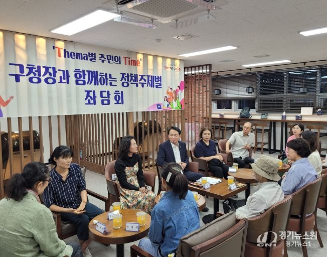 [경기뉴스원/경기뉴스1] | 김찬진 동구청장이 지난 23일 구청 물치도관에서 ‘Thema별 주민의 Time’ 2회차 정책 주제별 좌담회를 열었다.