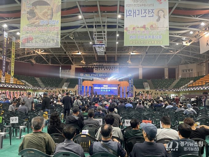 [경기뉴스원/경기뉴스1] | 제5회 충남도품목농업인연구연합회 전진대회가 ‘미래를 여는 품목농업, 충남농업의 도약’이라는 주제로 지난 25일 금산종합체육관에서 열렸다.
