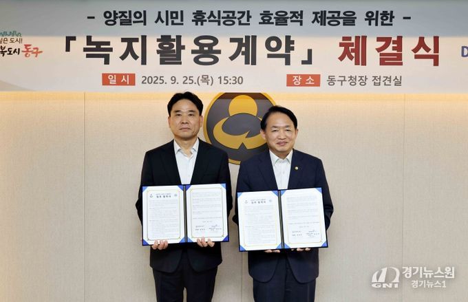 [경기뉴스원/경기뉴스1] | 인천 동구는 지난 25일 동원로엑스㈜(인천㈜ 대표이사 최안석)와‘녹지활용계약’을 체결했다고 밝혔다. 인천 최초로 진행된 이번 계약은 민간기업이 소유한 사유지를 주민에게 열린 녹지로 제공하는 새로운 방식의 민관 협력 모델이다.