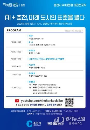 특히 이날 행사에서는 춘천의 AI 정책을 이끌 ‘춘천 AI 혁신 거버넌스’가 공식 출범한다.