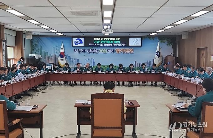 [경기뉴스원/경기뉴스1] | 충북 진천군은 29일 진천군청 대회의실에서 송기섭 진천군수 주재로 ‘중대재해 예방을 위한 긴급 안전점검 회의’를 개최했다.
