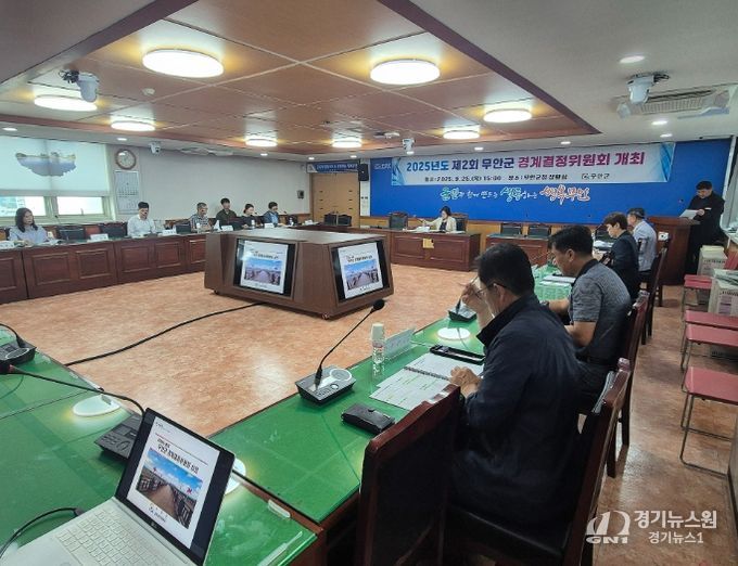 [경기뉴스원/경기뉴스1] | 전남 무안군은 지난 25일 군청 상황실에서 2025년 제2회 경계결정 위원회를 개최하고 운남면 하묘리 일대와 무안읍 신학리, 청계면 청수리 일대의 3개 지적재조사 사업지구에 대한 새로운 경계를 결정했다.
