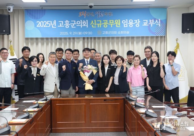 [경기뉴스원/경기뉴스1] | 고흥군의회는 소회의실에서 2025년 9월 29일 자 인사발령에 따른 신규 공무원 임용장 교부식을 가졌다.