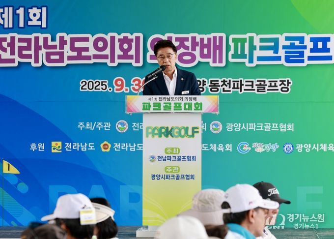 [경기뉴스원/경기뉴스1] | 전라남도의회 김태균 의장은 9월 30일 광양 동천파크골프장에서 개최된 ‘제1회 전라남도의회 의장배 파크골프대회’ 개회식에 참석하여 선수와 임원들을 격려했다.
