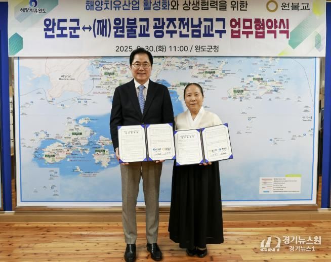 [경기뉴스원/경기뉴스1] | 완도군이 완도 해양치유산업 활성화를 위해 (재)원불교 광주전남교구와 업무 협약을 체결했다.