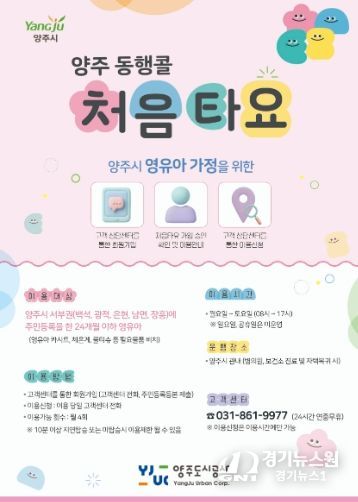 [경기뉴스원/경기뉴스1] | 양주시가 오는 10월 20일부터 읍·면 지역 24개월 이하 영유아를 동반한 보호자 이동지원차량 ‘처음타요’를 시범 운영한다.
