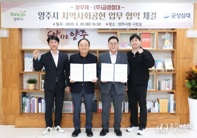 [경기뉴스원/경기뉴스1] | 양주시가 지난 30일 시청 시장실에서 ㈜금성침대와 지역사회공헌 업무 협약을 체결했다.