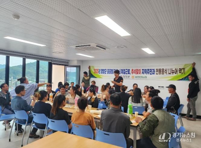 [경기뉴스원/경기뉴스1] | 남영양농협은 지난 10월 3일 영양군 농업근로자 기숙사에서 라오스 출신 공공형 계절근로자 30명과 지역주민이 함께하는‘추석맞이 전통음식 나누기' 행사를 가졌다.