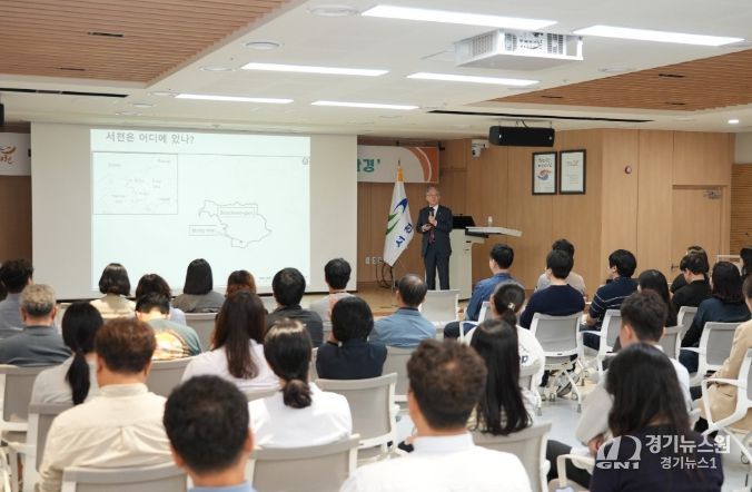 [경기뉴스원/경기뉴스1] | 서천군은 지난 17일 군청 대회의실에서 공직자 120명을 대상으로 국립생태원 이창석 원장을 초청해 ‘서천의 생태와 환경’을 주제로 특별강연을 개최했다.