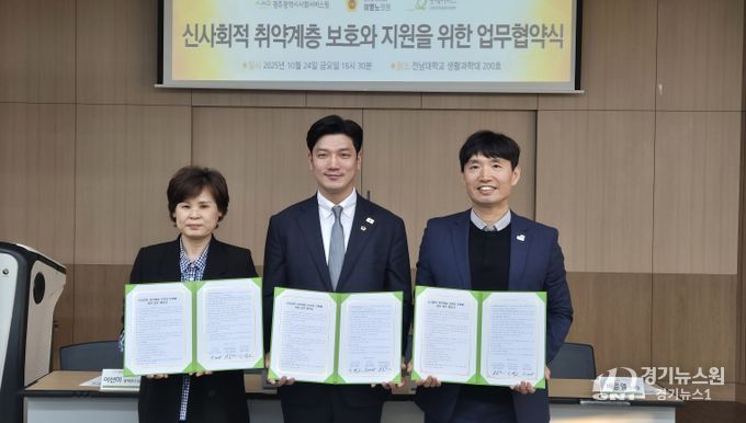[경기뉴스원/경기뉴스1] | 굿네이버스 광주지부(본부장 겸 사회적약자통합지원센터장 배준열)는 광주광역시의회 환경복지위원회 이명노(더불어민주당·서구3) 의원실, 광주광역시사회서비스원(원장 김대삼)과 함께 신사회적 취약계층 보호와 지원 강화를 위한 업무 협약식을 24일 진행했다고 밝혔다.