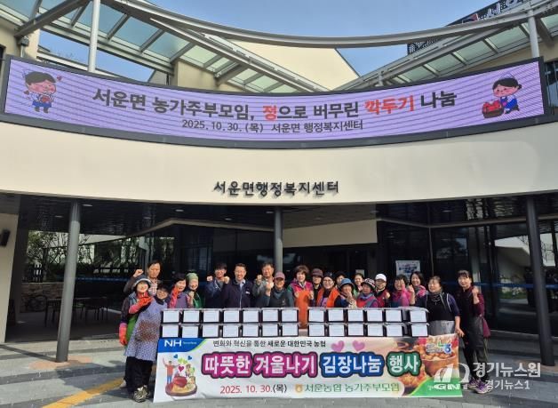 [경기뉴스원/경기뉴스1] | 10월 30일 서운면 농협 농가주부모임은 지역 내 어려운 이웃들을 위한 ‘따뜻한 겨울나기 김장 나눔 행사’를 실시했다.