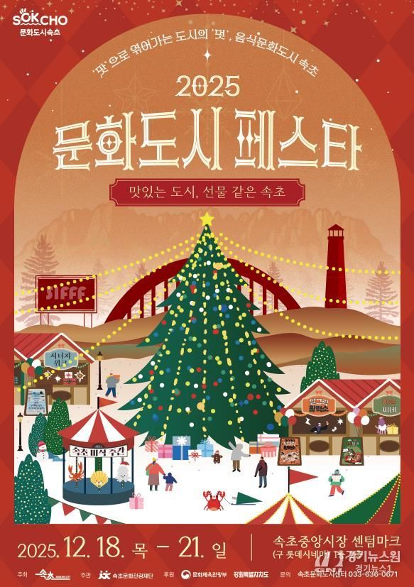 [경기뉴스원/경기뉴스1] | (재)속초문화관광재단은 속초시의 대한민국 문화도시 1년 차 사업을 마무리하며 오는 12월 18일부터 21일까지 4일간 속초중앙시장 센텀마크(구 롯데시네마) 에서 대한민국 문화도시 성과공유회‘2025 문화도시 페스타’를 개최한다.