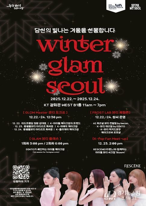 [경기뉴스원/경기뉴스1] | 서울시가 서울윈터페스타를 찾은 국내외 관광객에게 차별화된 한류 경험을 제공하기 위해 K-뷰티를 주제로 한 ‘윈터 글램 서울(Winter Glam Seoul)’ 팝업 행사를 12월 22일부터 24일까지 3일간 개최한다.