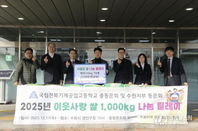 [경기뉴스원/경기뉴스1] | 권선구는 지난 17일, 국립전북기계공고 총동문회로부터 백미 10kg 70포(200만 원 상당)를 후원받았다고 밝혔다.