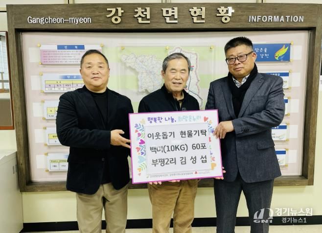 [경기뉴스원/경기뉴스1] | 강천면 부평2리에 거주하는 김성섭 씨가 지난 18일 강천면 행정복지센터를 방문하여 관내 어려운 이웃에게 전달해 달라며 백미(10kg) 60포를 강천면에 전달하여 지역사회의 귀감이 되고 있다.