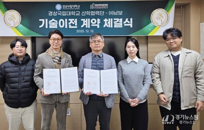 [경기뉴스원/경기뉴스1] | 경상국립대학교 산학협력단(단장 최병근)은 12월 12일 주식회사 남보(대표 박순한)에 ‘살충제 탑재 기능성 바이오차 활용 농업용 비료 및 농자재 제조 방법’과 12월 10일 국가탄소은행(대표 류성기)에 ‘바이오차 활용 고성능 에어필터 제조 방법’ 관련 기술(연구책임자 서동철 농업생명과학대학 환경생명화학과 교수) 2건을 이전했다.