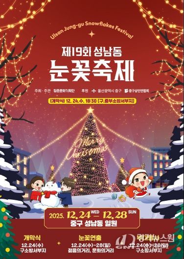 한편, 중구는 성남동 눈꽃축제와 연계해 옛 울산초등학교 앞~보세거리 입구 구간과 젊음의거리 등에 대형 성탄절 나무(크리스마스 트리), 종 모양 조형물, 2026 숫자 조형물 등을 설치해 운영하며 더욱 낭만적인 분위기를 연출할 계획이다.