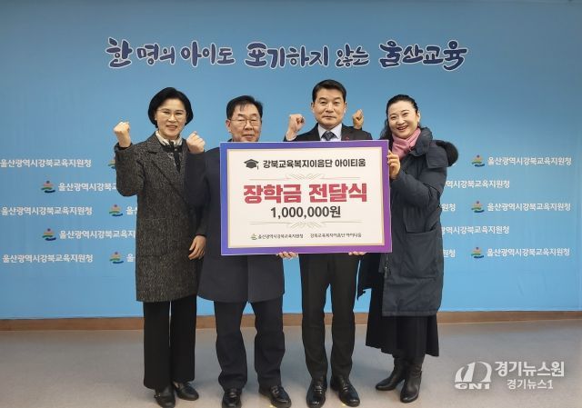 [경기뉴스원/경기뉴스1] | 울산 강북교육지원청은 19일 교육장실에서 교육복지이음단 동아리 ‘아이티움’의 장학금 전달식을 열었다.