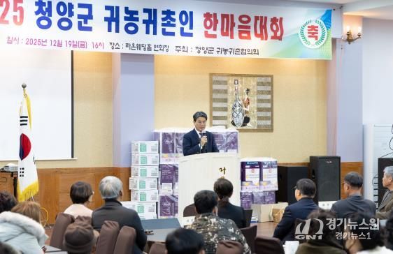 [경기뉴스원/경기뉴스1] | 귀농·귀촌인의 안정적인 지역 정착을 도모하고, 지역 주민과의 화합과 소통을 강화하기 위한 ‘2025 청양군 귀농·귀촌인 한마음 대회’가 지난 19일 청양읍 라온웨딩홀에서 성황리에 열렸다.