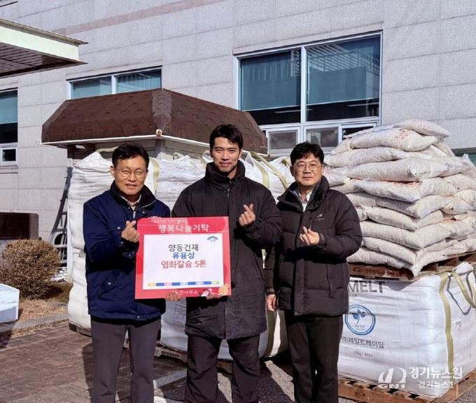 [경기뉴스원/경기뉴스1] | 양평군 양동면은 지난 19일 양동건재 류용상 씨가 양동면사무소를 방문해 겨울철 제설작업에 사용될 염화칼슘 5톤을 기탁하며 지역사회 안전과 이웃사랑 실천에 동참했다고 밝혔다.