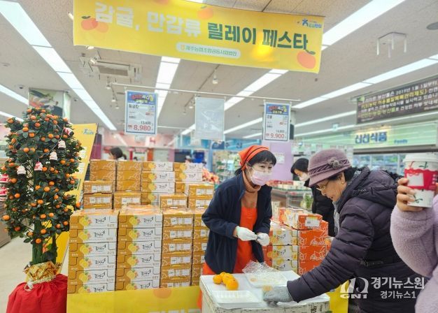 [경기뉴스원/경기뉴스1] | 제주시는 12월 소비 성수기를 맞아 전국 주요 소비지농협 하나로마트에서 진행 중인 ‘감귤 직거래 릴레이 페스타’를 통해 감귤 유통구조 개선과 소비 촉진이라는 두 가지 성과를 거두고 있다.