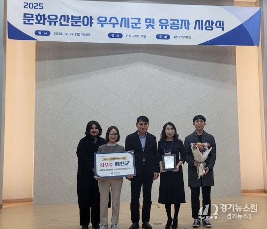 [경기뉴스원/경기뉴스1] | 예천군은 22일 안동 그랜드호텔에서 열린 경북도 주관 ‘2025년 시군 문화유산분야 평가’에서 최우수상을 수상하는 쾌거를 이루었다. 지난 2023년 최우수상, 2024년 특별상에 이어 2025년 최우수상까지 3년 연속 수상으로 문화유산 보존·관리·활용 분야에서 높이 평가받고 있다.