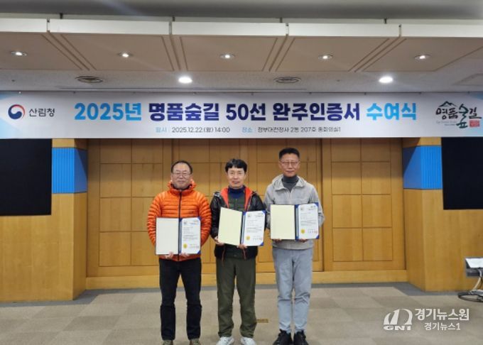 [경기뉴스원/경기뉴스1] | 산림청은 ‘명품숲길 50선 완주인증제’를 14일까지 완료하고, 전 구간을 완주한 인증자 23명을 대상으로 완주인증 수여식을 개최했다고 22일 밝혔다.