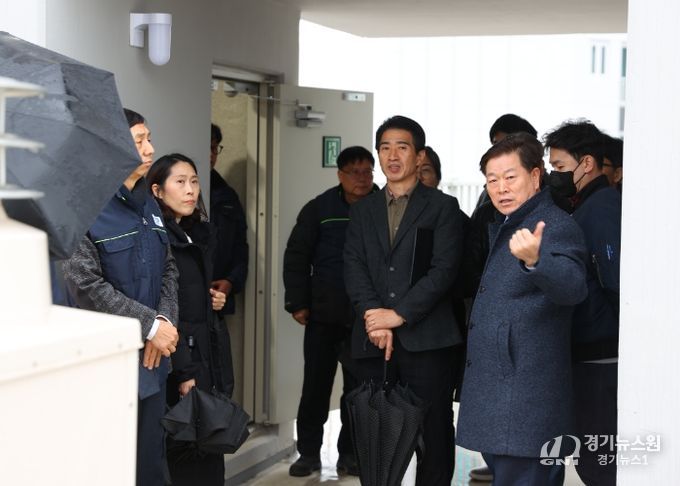 [경기뉴스원/경기뉴스1] | 박승원 광명시장이 23일 오후 준공을 앞둔 ‘광명소하신원아침도시’를 방문해 입주 예정자 10여 명과 함께 시공 품질을 점검했다.