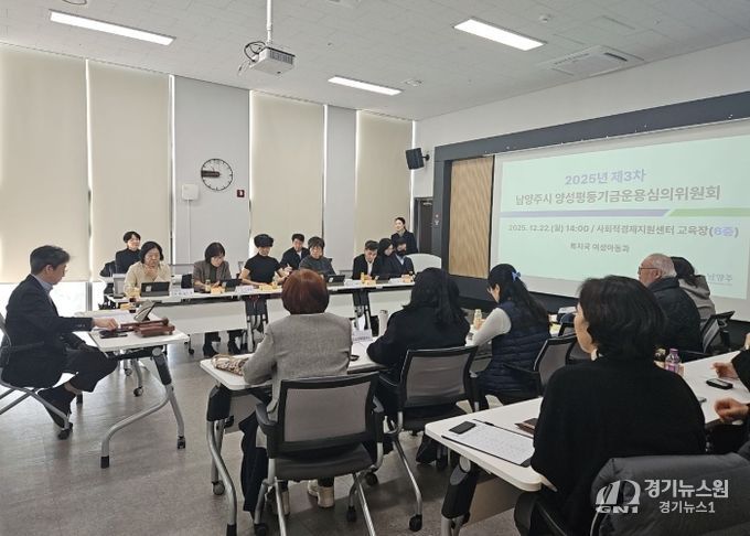 [경기뉴스원/경기뉴스1] | 남양주시는 22일 남양주사회적경제지원센터에서 ‘2025년 제3차 남양주시 양성평등기금운용심의위원회 및 성과공유회’를 개최하고, 올해 추진한 양성평등기금 지원사업의 성과를 공유하며 2026년도 사업방향을 논의했다고 밝혔다.