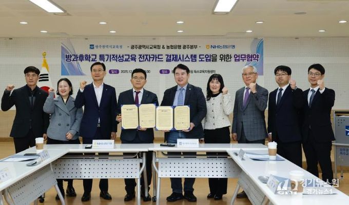 [경기뉴스원/경기뉴스1] | 광주시교육청은 23일 시교육청 특수교육지원센터에서 NH농협은행 광주본부와 ‘특수교육대상학생 방과후 특기·적성지원 전자카드 결제시스템 도입을 위한 업무협약’을 체결했다.