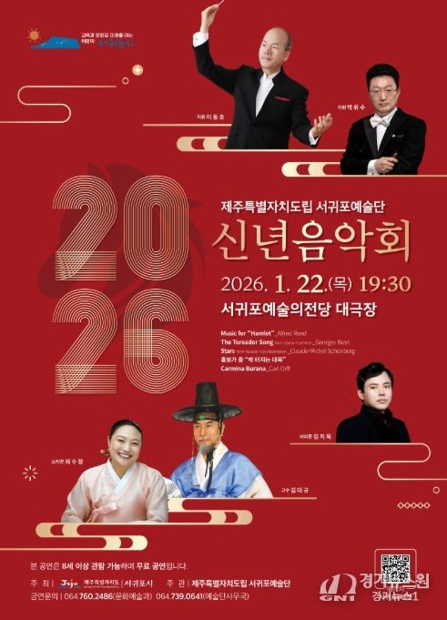 [경기뉴스원/경기뉴스1] | 서귀포시는 1월 22일 19시 30분 서귀포예술의전당 대극장에서 ‘제주특별자치도립 서귀포예술단 2026 신년음악회’를 개최한다.