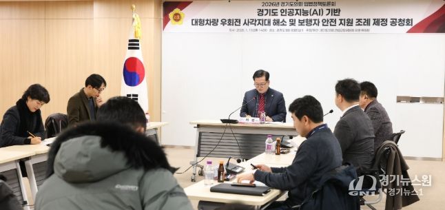[경기뉴스원/경기뉴스1] | 경기도의회 건설교통위원회 허원 위원장(국민의힘·이천2)은 19일 경기도의회 중회의실에서 '경기도 인공지능(AI) 기반 대형차량 우회전 사각지대 해소 및 보행자 안전 지원 조례' 제정을 위한 공청회를 개최했다.