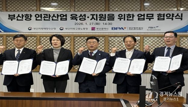 [경기뉴스원/경기뉴스1] | 부산시는 27일 오후 2시 30분 부산항만공사 중회의실에서 부산지방해양수산청, 부산지방고용노동청, 부산항만공사, 부산항만산업총연합회와 '부산항 항만연관산업* 육성·지원을 위한 업무협약'을 체결했다고 밝혔다.