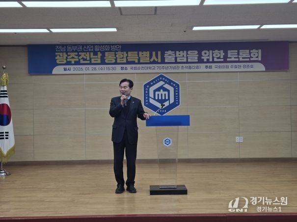 [경기뉴스원/경기뉴스1] | 더불어민주당 주철현 국회의원(전남 여수시갑)은 28일, 국립순천대학교에서 ‘전남광주특별시’ 출범 과정에서 전남 동부권 산업의 역할과 경쟁력 강화를 논의하기 위한 '광주전남 통합특별시 출범 토론회'를 개최했다.