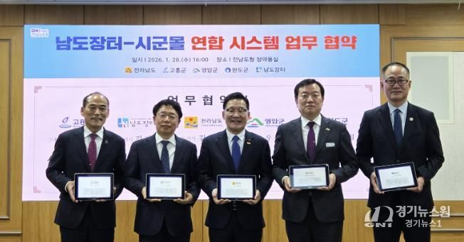 [경기뉴스원/경기뉴스1] | 완도군은 지난 28일 전남도청 정약용실에서 남도장터, 고흥군, 영암군과 함께 ‘남도 장터-시군 몰 연합 시스템 업무 협약’을 체결했다.