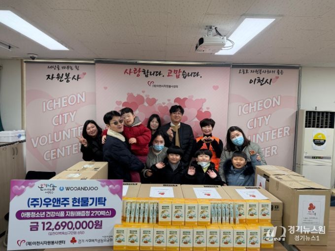 (주)우앤주는 연말연시 집중 자원봉사 기간을 맞아 배즙청 270박스(약 1,270만 원 상당)를 경기사회복지공동모금회를 통해 이천시자원봉사센터에 기탁했다. 기탁된 물품은 이천시 국공립 장애아동 어린이집인 해누리어린이집을 비롯해 관내 아동·청소년들에게 전달되어 겨울철 건강 관리에 도움을 줄 예정이다.