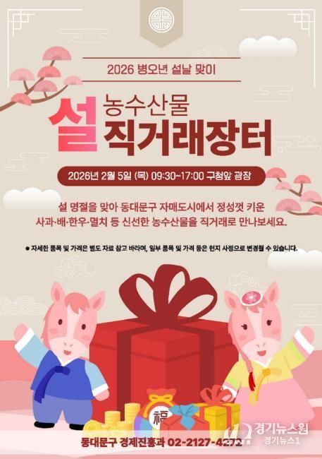 [경기뉴스원/경기뉴스1] | 동대문구가 5일 오전 9시 30분부터 오후 5시까지 구청 앞 미래광장에서 설 농수산물 직거래 장터를 연다.