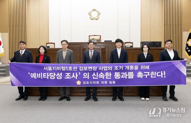 [경기뉴스원/경기뉴스1] | 김포시의회는 5일 열린 제265회 임시회 제2차 본회의에서 시의원 14명이 공동으로 발의한 ‘서울지하철5호선 김포 연장사업 신속 예비타당성 조사 통과 촉구 결의안’을 채택했다.