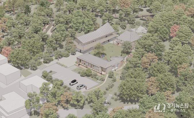 지상 1층 2개 동, 지상 2층 1개 동을 합쳐 총 3개 동으로 건립되는 산림복합체험센터는 ▲음악 작은 도서관 ▲정원 카페 ▲정원 치유센터로 구성됐다.