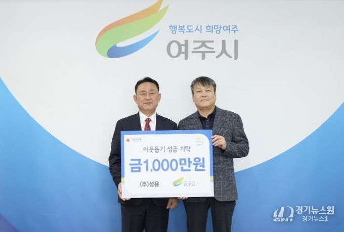 [경기뉴스원/경기뉴스1] | 지난 10일 오화진 ㈜성용 대표는 여주시청을 방문하여 이웃돕기 성금 1,000만원을 기탁했다.
