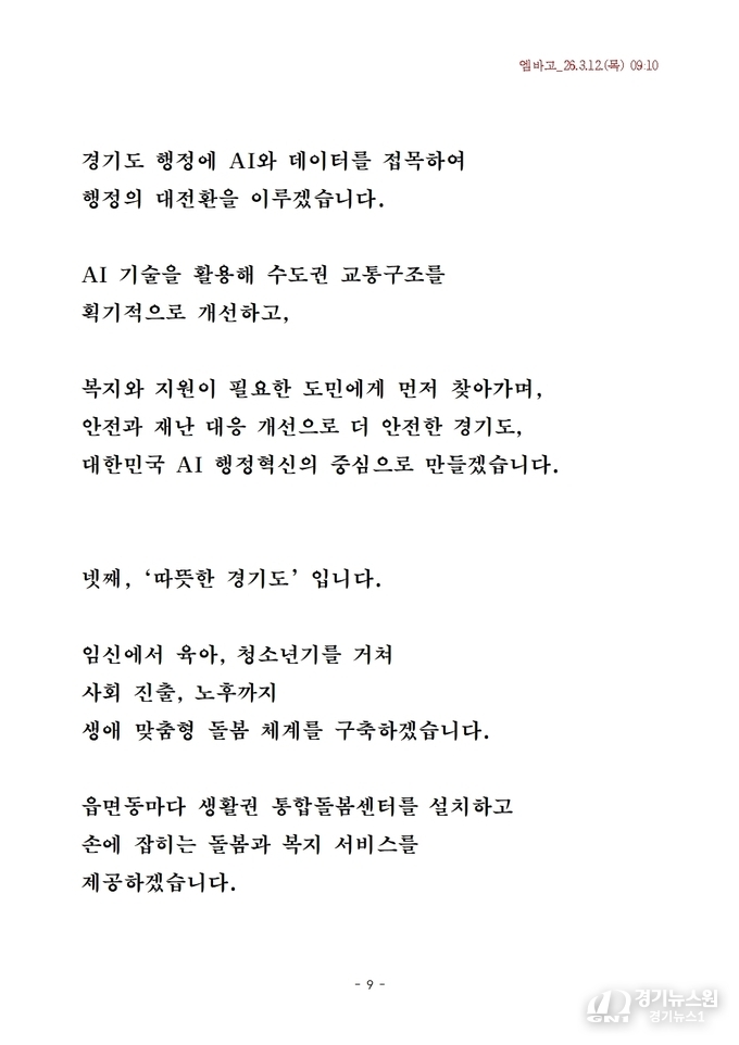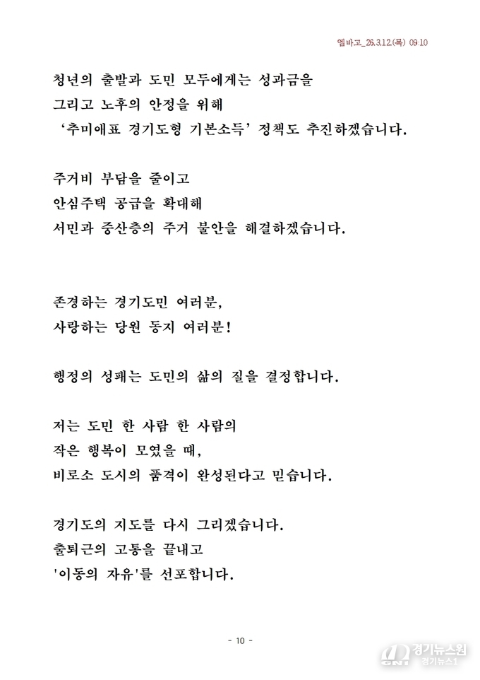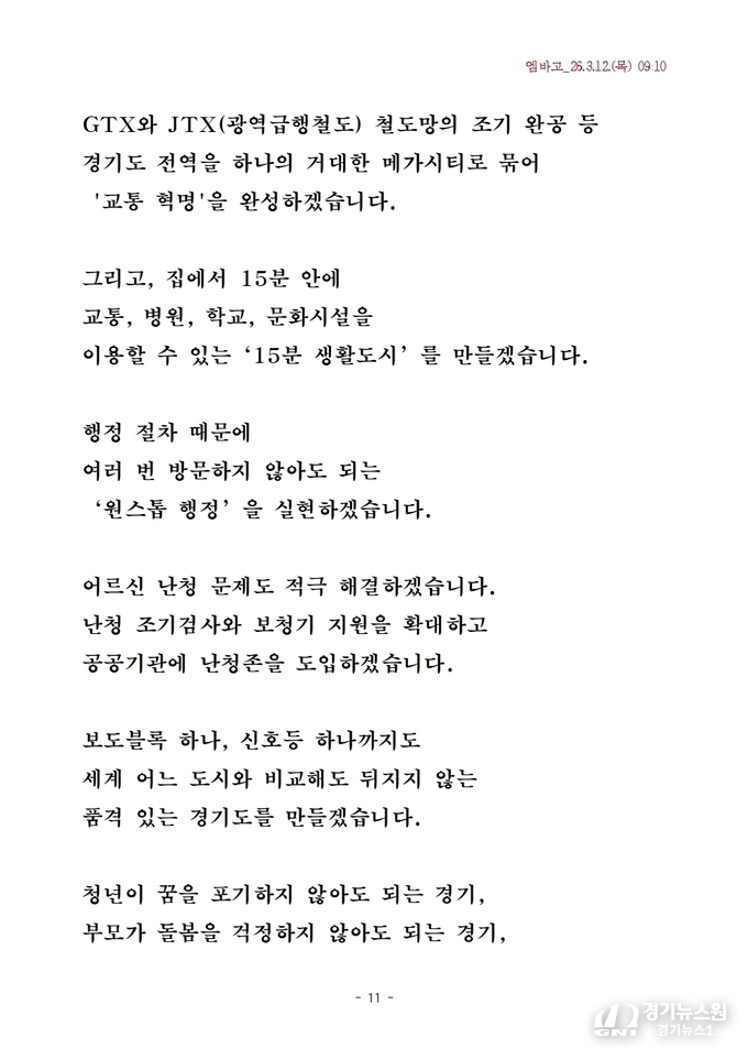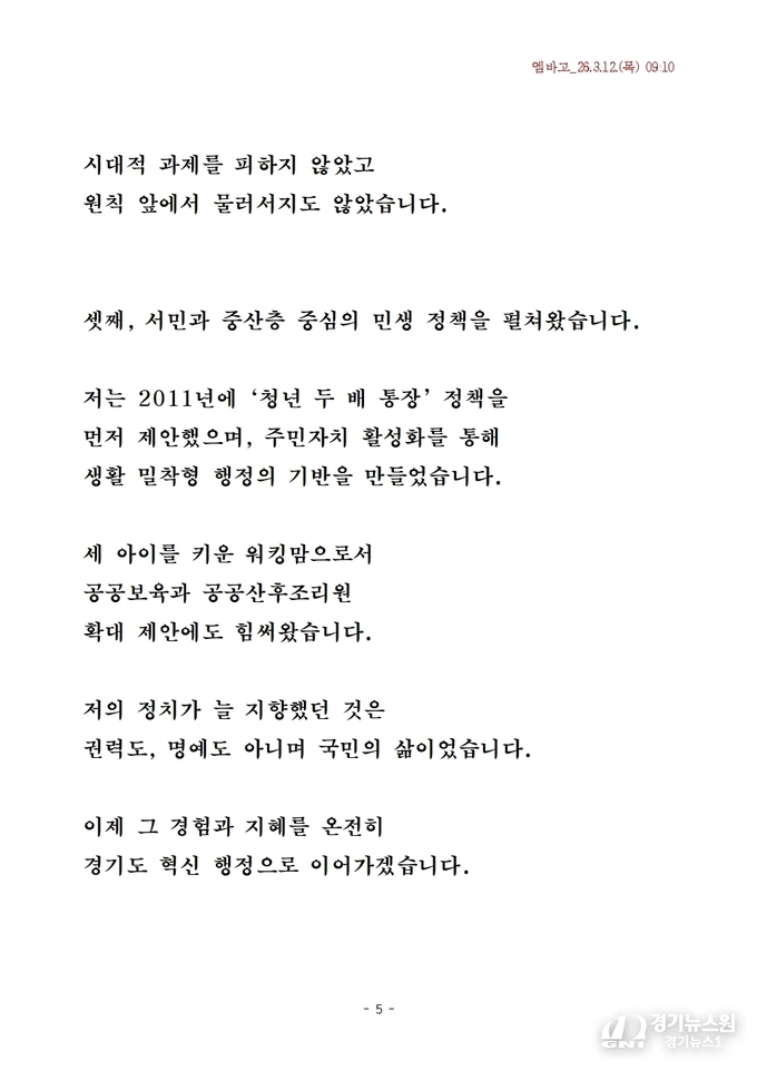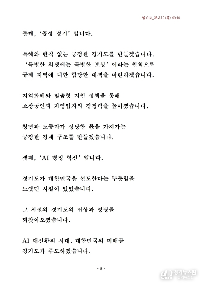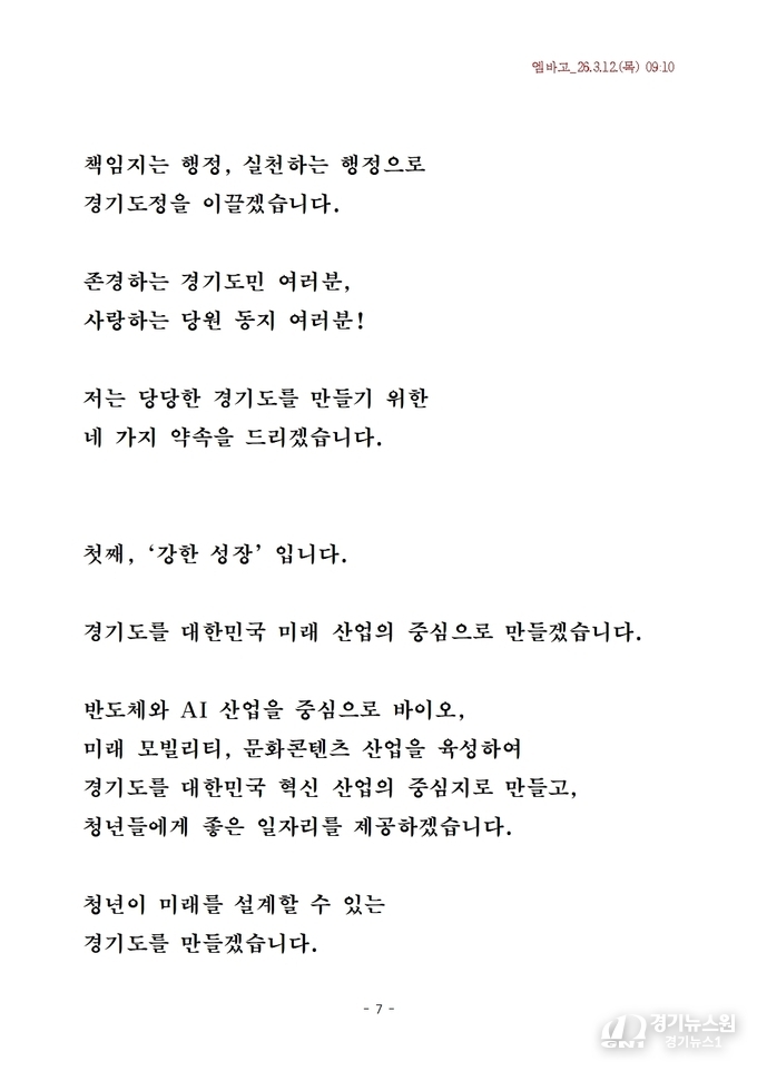 “청년이 미래를 설계할 수 있는 경기도를 만들겠다”는 발언에서 나타나듯, 산업 혁신과 경제 활성화가 경기도를 대한민국 경제 변화의 중심으로 만들 핵심 동력으로 제시됐다.