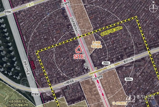 대상지는 9호선과 신분당선이 교차하는 신논현역 인근의 강남대로변에 위치하고 있으며, 업무시설을 포함한 복합문화 상업공간을 조성하는 사업이다. 이를 통해 강남도심의 업무기능이 강화되고 역세권 중심의 가로 활력이 확산될 것으로 예상된다.