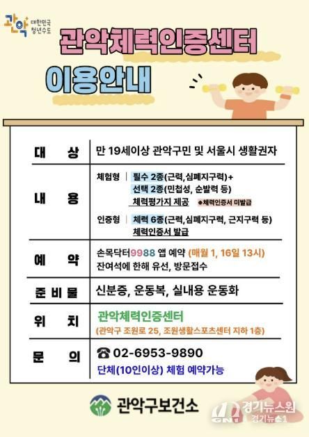 [경기뉴스원/경기뉴스1] | 관악구가 지난 3일 개관한 ‘관악체력인증센터’를 통해 구민들이 자신의 체력을 점검하고 맞춤형 건강 관리를 시작할 수 있도록 적극적인 홍보에 나섰다.