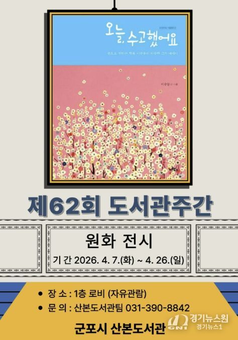 [경기뉴스원/경기뉴스1] | 군포시 산본도서관은 도서관주간을 맞아 시민들의 독서문화 확산과 책을 통한 공감의 시간을 마련하기 위해 작가와의 만남, 북토크, 원화전시 등 다양한 프로그램을 운영한다.